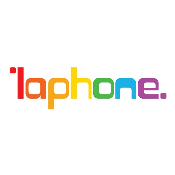 laphone的品牌標誌設計源自於訊息的傳遞,每一個字母都是由左上、右下的方塊訊息符號延伸而來;圓弧且不規則的線條傳達出科技是因應人的需求而生,具有溫度與生命力;搭配七種不同的顏色,即是表現出每個人皆為獨具風格的個體,也符合laphone期望為顧客打造繽紛生活的品牌精神。