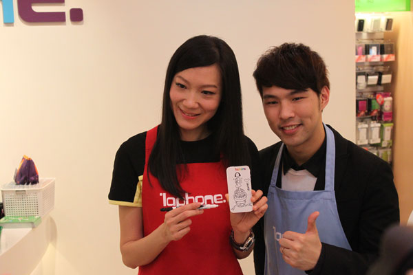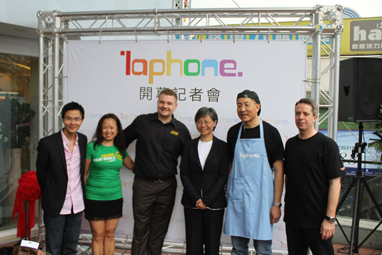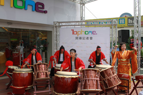 在開幕記者會當天,用氣勢十足、撼動人心的日式太鼓表演揭開序幕,另邀請到實踐大學時尚與媒體設計研究所所長曲家瑞暢談年輕世代揮灑創意;還有請到創作歌手陳威全擔任一日店長,也分享自己創作的經驗,並於現場演唱符合laphone創意繽紛定位的全新單曲。除此之外,曲家瑞也於現場創作為laphone設計的全新手機背蓋圖案,此款手機背蓋將於laphone店內限量生產販售,販售所得將全數捐贈予兒福聯盟。